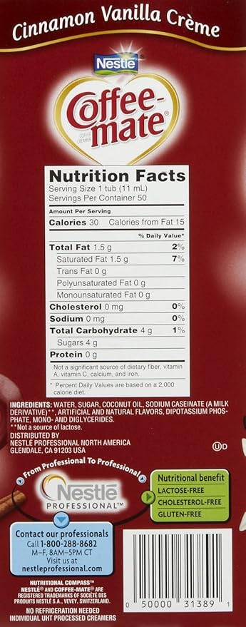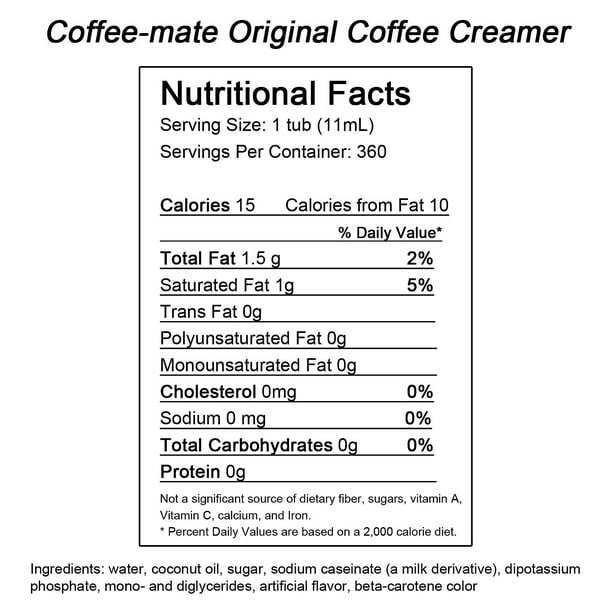Sure, you could live without it, but why would you want to? Clip the 25% off coupon. This coffee creamer will make your daily caffeine go down so. The % daily value (dv) tells you how much a nutrient in a serving of food contributes to a daily diet. Nestle coffee mate coffee creamer, original, liquid creamer singles | box of 360. Like a little more cream? Coffee mate french vanilla liquid coffee creamer 16 fl. Within each cup is a harmonious blend between a deliciously rich, velvety smooth classic and bright french vanilla notes that will enhance customer and employee satisfaction, and enrich your coffee offer with a touch of. Nutrition information for coffee mate creamer. Some results of coffee mate creamers singles only suit for specific products, so make sure all the items in your cart qualify before submitting. Nes35010 coffee mate original liquid creamer singles flavor 0 38 fl oz 11 ml 360 carton 1 serving office supply hut coffee mate creamer singles nutrition page 1 line 17qq powdered. That means they are prepared according to the requirements of jewish law. Choose to subscribe and save (you can cancel your.